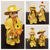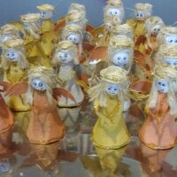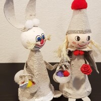 Za izradu anđelčića, zečića i lutkica sve isto samo što je potrebna i glavica. "Ja sam nasreću imala nekoliko komada kupljenih ranije, ali nije veliki problem ni napraviti ju doma, ili ako se ima kakva veća drvena perla iz ogrlice, također može poslužiti. Inače su te kupljene glavice od vate. Doma ih se može napraviti također od vate i malo ljepila (drvofixa) ili ljepila od brašna. Kad se osuše nacrtati okice, nosić i smješak na usnama", upućuje nas ova kreativka. Dalje se izrezivanjem iz ostatka kutija može napraviti sve što poželite: uha, rep i šape za zeku, krila i ručice za anđelčiće, kapice, šeširice, pelerinice, košarice, torbice i sl za lutkice. (Vidi sl. br. 5, 6, 7, 8 i 9)