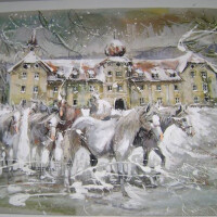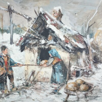 Razigrani konji bijelci i vranci, zaprege sa veselim bećarima i snašama, unuci sa djedom i bakom pokraj tople krušne peći, plastovi sijena, đerme, zimske slavonske idile. To su najčešći motivi slikara Josipa Vukojevića iz Slobodnice koji podsjećaju na nekadašnju Slavoniju punu života.
