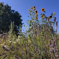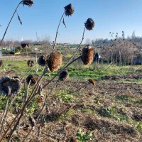Moj suncokret cvate do prvih mrazeva. Njegovim se sjemenom hrane ptice, pomoću kojih se on i osjemenjuje. Stabljike stoje u vrtu preko zime, uglavnom naherene, čekaju proljeće i slobodno vrijeme da ih iščupam i nađem im novu svrhu.