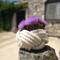 Novi izazov su joj suveniri od konopa za koji je dobila oznaku HOP. Kako je došla na ideju i o kakvim suvenirima se radi, Maja nam je povjerila: “Imala sam dva dida Vjeku i Branka, pomorca i ribara i od malih nogu sam gledala kako krpaju mriže i pletu damižane”, započinje Maja. Igla za pletenje imala je posebno mjesto u konobi i nije se smjela staviti nigdje drugdje. To joj se još kao djetetu uvuklo pod kožu pa je prije četiri, pet godina nagovorila dida da je nauči plesti damižanu. Šteta bi bila da se tako nešto zaboravi, kaže Maja, pa je poslije didove poduke u svojim odraslim godinama na internetu našla, kako kaže, neke zanimljive knjige i otkrila dekorativne čvorove koji su je oduševili.