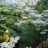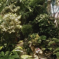 Ali ne bilo kakvu šumu, s vremenom su javori počeli dobivati tropske susjede. Tako danas u vrtu ima više od 100 javora, ali još više palmi koje s obožavanjem spominje