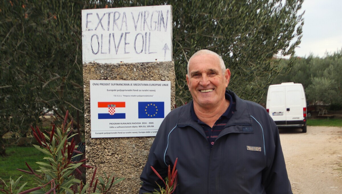 Drago Jakelić bavi se ekstenzivnim uzgojem maslina u zaleđu Šibenika. Koristi potporu EU, a nagrađivano maslinovo ulje prodajue na kućnom pragu.