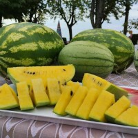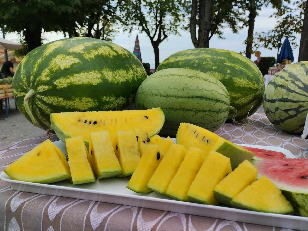 "Slađa je od crvene”, komentirali su degustatori koji su se pretvorili u kupce, jer - tko bi odolio odnijeti kući nešto tako ukusno?! Čuli smo kako su navodno prvo bile upravo žute lubenice, a da su tek naknadnim križanjima nastale crvene.