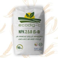 Ecodig-C NPK 2:5:8 (S-8) je organsko-mineralno peletirano gnojivo nastalo anaerobnom fermentacijom biljnih materijala i gnoja iz stočarske proizvodnje uz umanjeni dodatak mineralne komponente. Proizvod sadrži visoki udio organske tvari te ujedno i visoki udio organskog ugljika koji uvelike pospješuje vodo-zračne odnose i apsorciju hranjivih tvari u tlu.