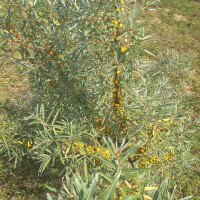 Listovi su naizmjenični, dugi, kopljasti, srebrni na donjoj strani, a kasnije smeđe-crveni i ljuskasti. Muški cvjetovi sakupljeni su u kratke rese; ženski cvjetovi u rahle grozdove na stapkama. Cvjeta u travnju i svibnju. Oprašuje se pomoću vjetra. Plod je narančasta ili žuta bobica sa smeđim točkicama. i vrlo bogat karotinom i vitaminima C, E (alfa tokoferol) i F. Plodovi služe i za ljudsku prehranu ali samo u prerađenom obliku, (sirove bobice nisu za jelo); za marmeladu, pekmez, žele (bez sjemenki), vitaminski koncentrat, sok, dodatak različitim jelima i drugo.