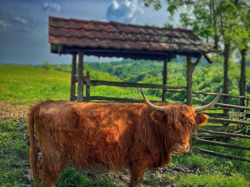 U Slavoniji stoji škotska krava, čupava i ponosna, gleda te ravno u oči kao da kaže: “Nisam zalutala – došla sam s razlogom.” 🌾🐮 #RuralFoto #životinje
