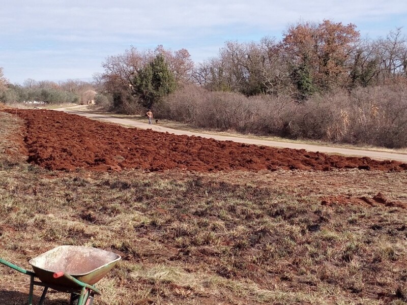 Panjevi su povađeni, dio terena se ravna i nasipava a drugi dio će za vikend biti potanjuran nakon oranja. Sve ide polako , a dodatno je sve usporeno i zbog epidemije covida19. Revitaliziram i dio starog suhozida na malo moderniji način sa betonom u sredini.