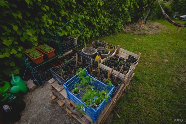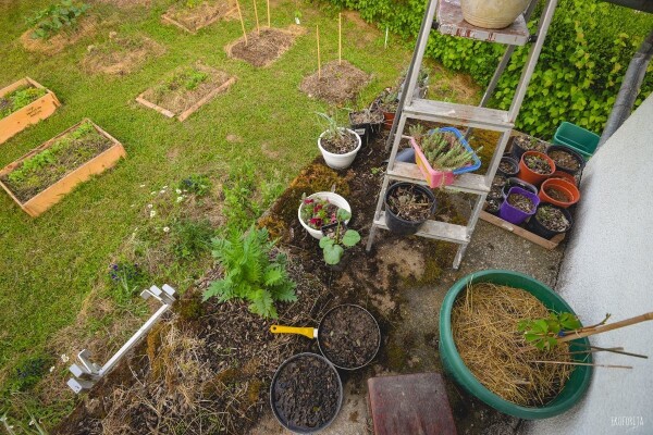 Svoj komposter, malč, hrpu povrća i smilje,