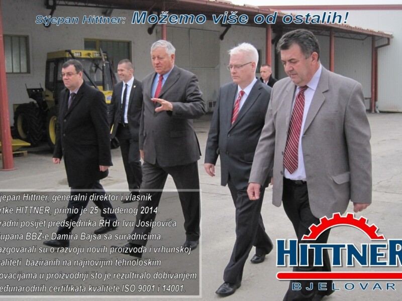 Našu tvrtku posjetili su predsjednik Ivo Josipović i župan BBŽ Damir Bajs te sa direktorom Stjepanom Hittnerom razgovarali o razvoju novih proizvoda i vrhunskoj kvaliteti, baziranih na najnovijim tehnološkim inovacijama u proizvodnji što je rezultiralo dobivanjem međunarodnih certifikata kvalitete ISO 9001 i 14001!