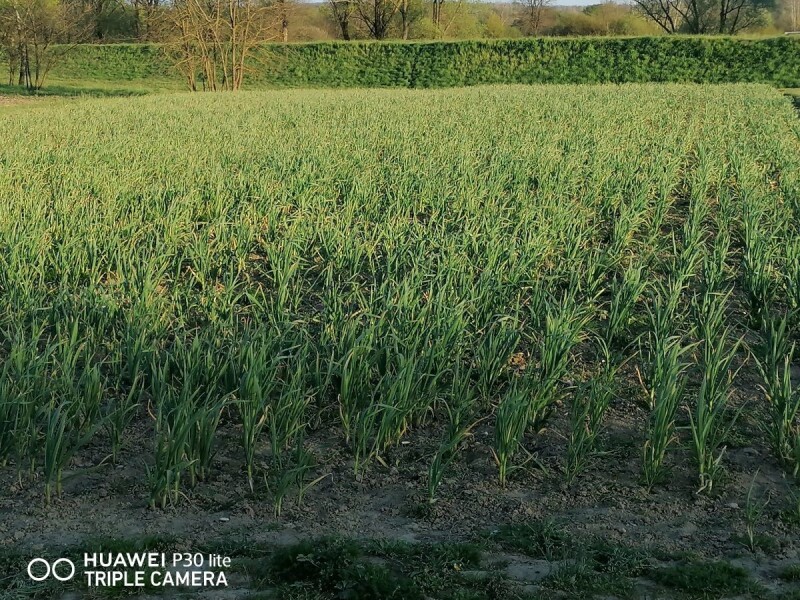 U međuvremenu moj češnjak je u punom jeku, sve ručno obrađujemo, trenutno smo u fazi čupanja trave, koje već poprilićno ima, koristimo samo ekološke preparate, jučer smo ga špricali sa šećernom otopinom protiv lukove muhe, a prihranjujemo ga eko stimulatorom rasta condi Vegom, proizvođač firma EM TEHNOLOGIJA iz Valpova