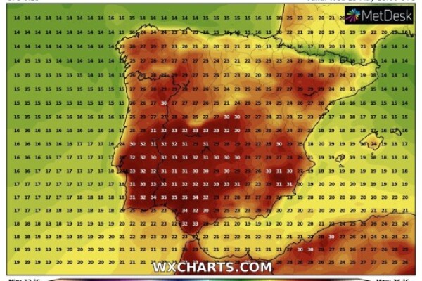 The heat wave across southern and western parts of the Iberian peninsula continues. Daytime highs reached 37 °C on Monday and several more days of very hot weather for this period is expected. We take...