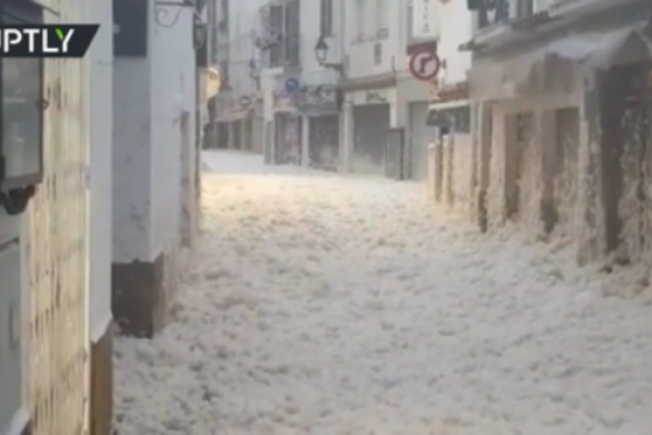 Sea foam blankets parts of Catalonia as GIGANTIC waves batter the Balearic Islands (VIDEOS)