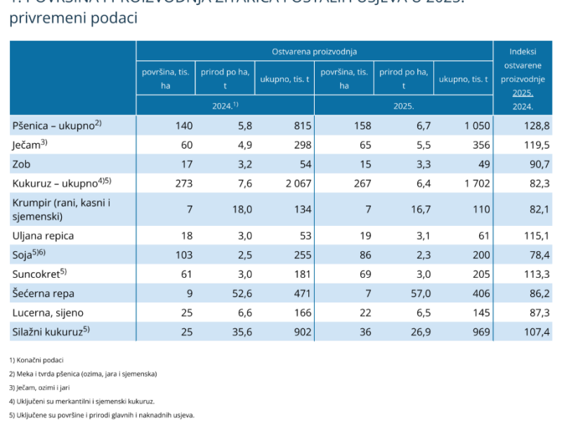 Državni zavod za statistiku ima podatke o proizvodnji žitarica i uljarica 2025. Uskoro više!