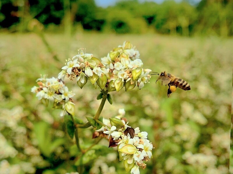 Jedna pčela. Jedan cvijet. Tisuće razloga da čuvamo ono što se čini malim, a zapravo nas sve hrani. Pčela uhvačena na bijelom cvijetu heljde. Slika nastala na polju heljde u Starom Gracu. #RuralFoto #životinje