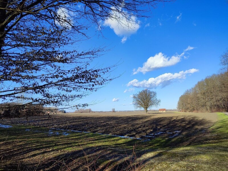 #RuralFoto #priroda Plodna njiva pod vedrim nebom ocrtava miran proljetni krajolik, gdje osamljeno drvo i mala kuća na horizontu svjedoče o jednostavnosti života u ruralnoj tišini.