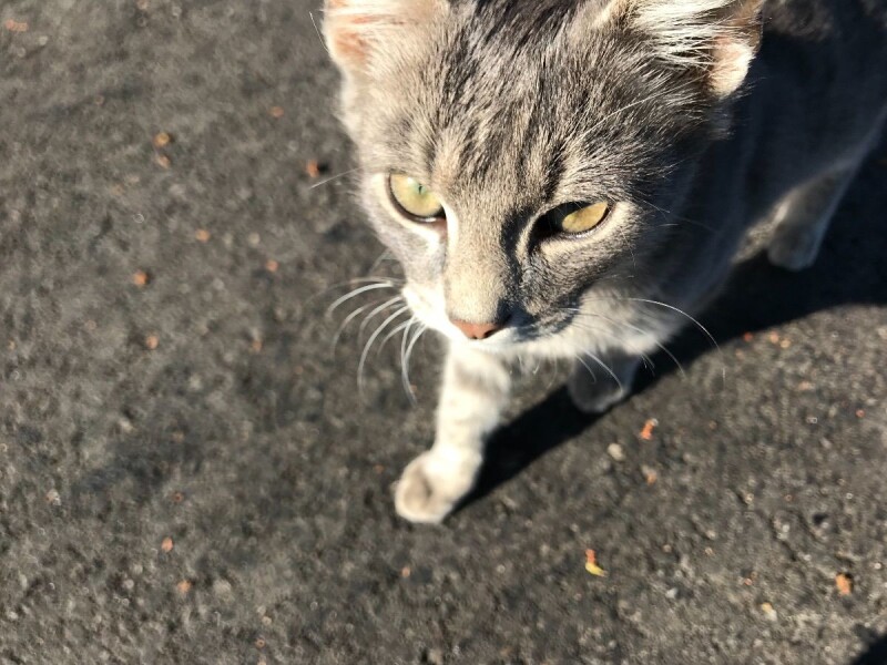 Ne znam, ali, moja mačka izgleda tako prije nego se omota oko nogu. :)