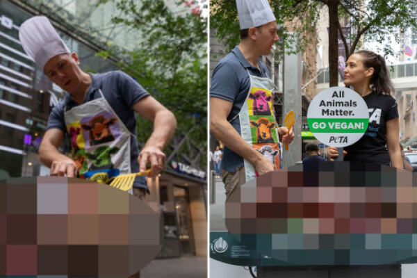 PETA barbecues fake dog in Sydney CBD