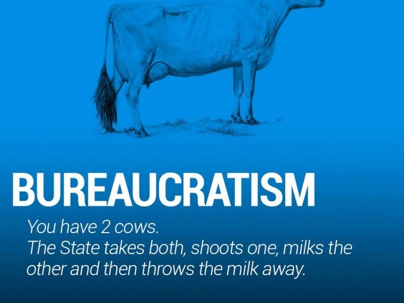 You have two cows. You dont have time to milk them because you have to get all THE PAPERS to get the permission to milk them. The cows die and you Više [+]
