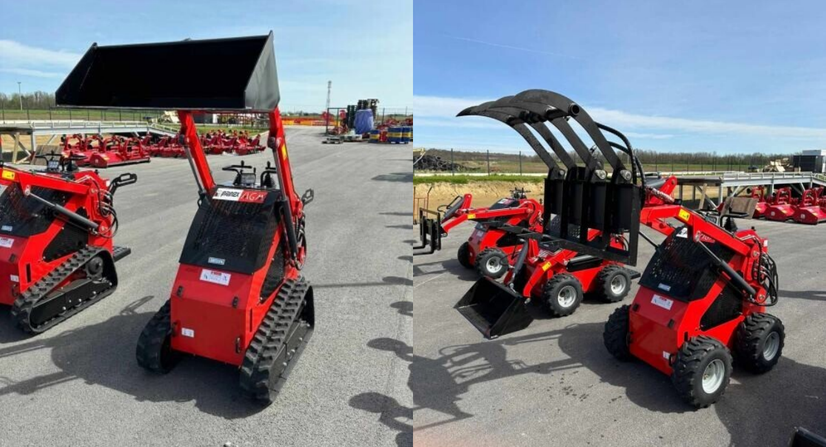 Mlađi (i manji) brat blizanac utovarivača od ranije dolazi u dvije varijante - s kotačima i s gusjenicama. Nije baš tako snažan, ali za osnovne potrebe i manja dizanja je savršen jer ni nosivost od 200 kg nije zanemariva kada je fizički rad u pitanju. Uz njega idu različiti priključci ovisno o vašim potrebama i željama.