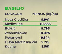 foto: Rezultati pokusa za Basilio po lokacijama
