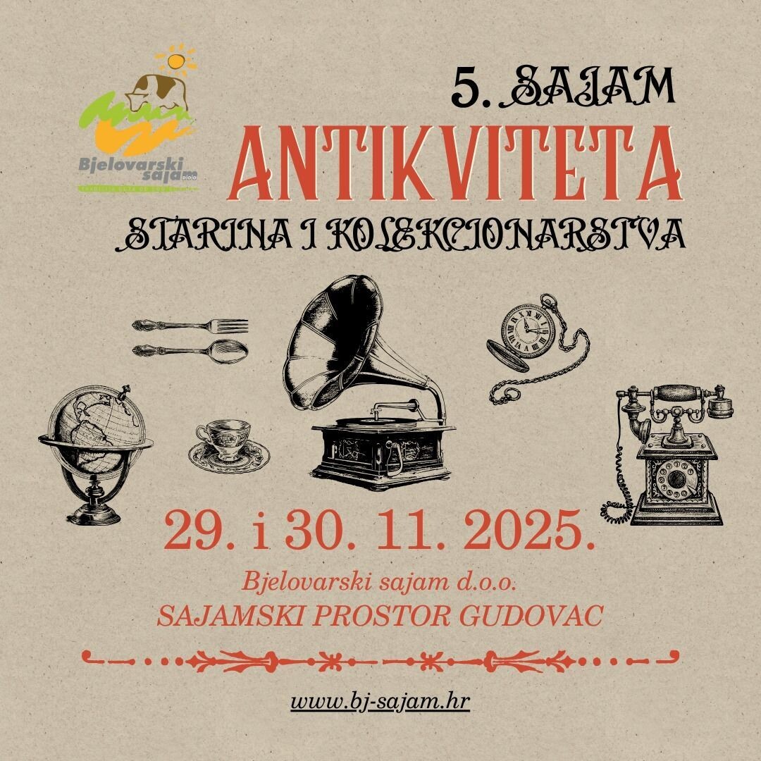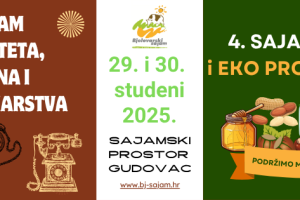 Zadnji vikend u studenom očekuju nas još dvije zanimljive manifestacije na Sajamskom prostoru Gudovac. 4. SAJAM OPG-ova i EKO PROIZVOĐAČA 5. SAJAM ANTIKVITETA, STARINA I KOLEKCIONARSTVA 29. i 30. 11. 2025. Sajamski prostor Gudovac Štandovi... Više [+]