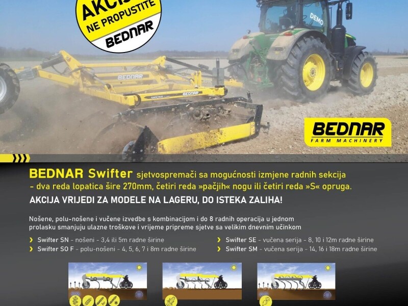 Osigurajte na vrijeme najbolju predsjetvenu pripremu s BEDNAR Swifter sjetvospremačima 👌💛. To je preduvjet za kvalitetno nicanje biljke, te isto tako osigurava lakšu i kvalitetniju sjetvu 🌱.