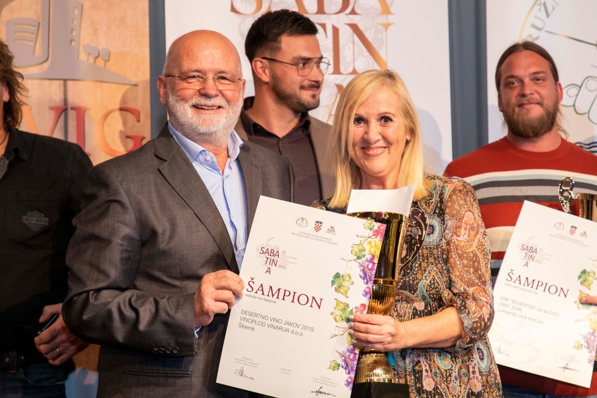 Svečani pehar primio je Mile Gojanović te istaknuo da kvaliteta njihovih vina i jakih alkoholnih pića nije opadala čak ni u turbulentnim situacijama u kojima se našla ova šibenska vinarija.