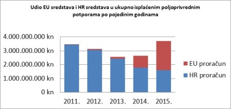 Od tog iznosa, iz EU proračuna refundirano je više od polovice sredstava, točnije 2,1 milijardu kuna. To je najviši do sad isplaćeni novac, kada je riječ o EU fondovima u poljoprivredi.