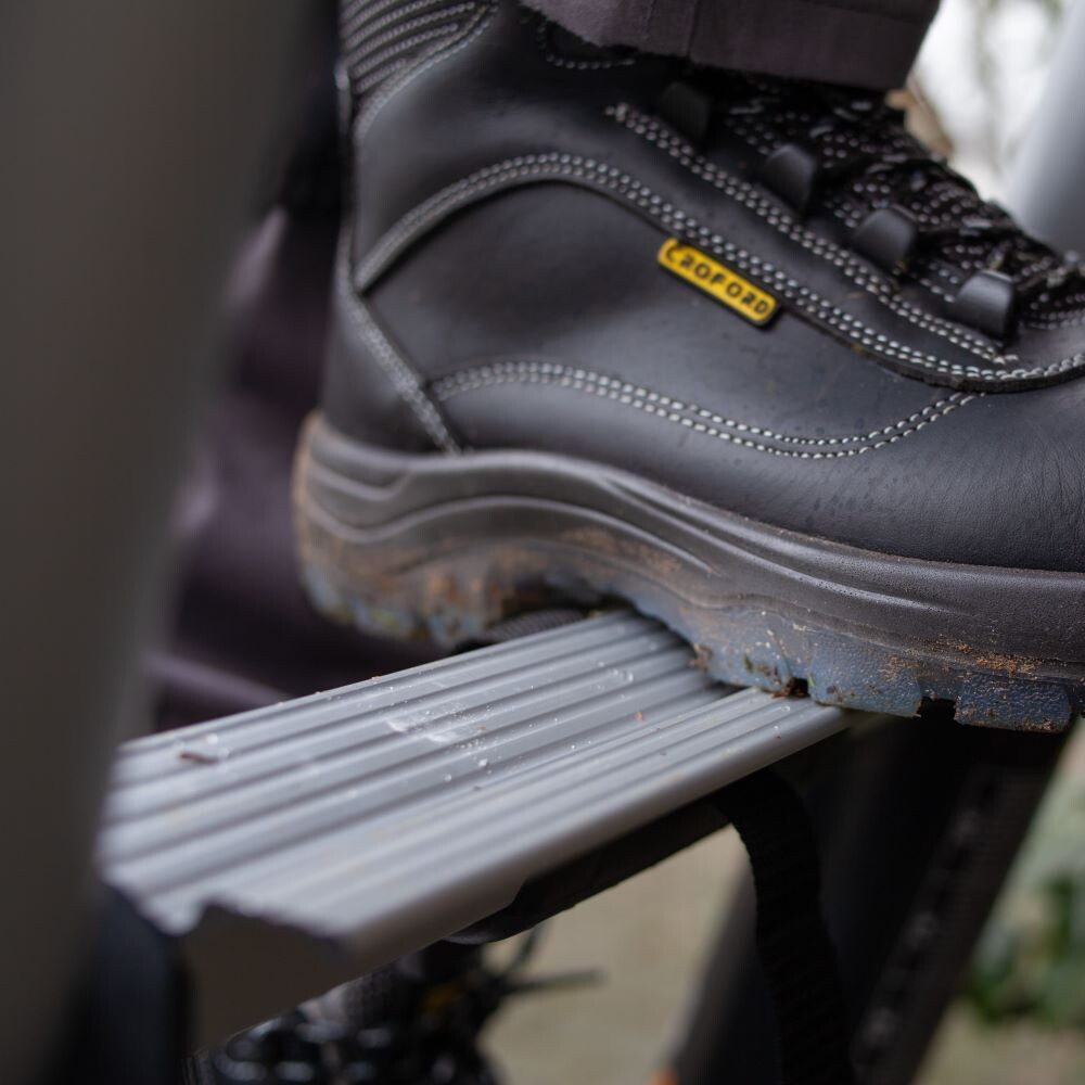 S PRO teleskopskim ljestvama Batavia Giraffe Air sigurni ste u siguran i odobren proizvod, uostalom, ne želite da vam se išta dogodi. Jedne od rijetkih teleskopskih ljestava na tržištu koje zadovoljavaju sve sigurnosne zahtjeve proizvoda. Teleskopske ljestve izrađene su od visokokvalitetnog aluminija u kompaktnom i prostorno štedljivom dizajnu te su jednostavne za rukovanje. Ljestve se lako postavljaju na željenu visinu. Prečke su opremljene protukliznim profilom koji omogućuje stabilan radni položaj. Patentirani sustav uvlačenja Giraffe Air razlikuje se od drugih marki i omogućuje jednostavan i siguran rad. Kod Giraffe Air, umetanje segmenata regulirano je zračnim odbojnikom koji polako izlazi iz genijalnih ventila. To uzrokuje da ljestve polako i kontrolirano klize prema dolje, što pruža dodatnu sigurnost prilikom uvlačenja.