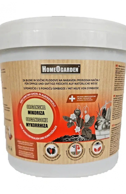 Mikoriza ili mikorizne gljive dragocjeni su prijatelji svih vrsta biljaka. Pomoću simbioze mikoriza opskrbljuje biljke hranjivim tvarima i vodom. Biljke će lijepo napredovati stvarajući snažne listove i bujne plodove. Mikoriza je pogodna za osnovnu gnojidbu, prihranu i presađivanje svih vrsta biljaka. Uz pomoć mikorize biljke će dobiti čak 4-5 puta veći volumen korijena iz kojeg mogu apsorbirati hranjive tvari i mnogo su otpornije na stres iz okoline i na bolesti. Pomoću mikorize i mikoriznih gljva povećat ćete prinos na potpuno prirodan način i održati zemlju punu hranjivim sastojcima i živim organizmima. Koliko mikorize dodajemo biljkama? Manjim sadnicama (jagode) dodajte 5-10 ml mikorize (2-4 žličice). Srednjim sadnicama (krastavci, manje rajčice) dodajte 10-15 ml mikorize (4-6 žličica) Većim i jačim sadnicama (tikve, rajčice) dodajte do 20 ml (do 8 žličica). Mikoriza je pogodna za sve oblike sadnje, poput cvjetnjaka, visokih gredica, vreća za sadnju ili balkonskih posuda i koristi se za sve vrste biljaka, povrće i voće, začinsko bilje i cvijeće. Što sadrži Mikoriza? Endomikorizne gljive: Claroideoglomus etunicatum, Rhizophagus intraradices, Claroideoglomus claroideum – svi prirodni sojevi; ne sadrže genetski modificirane organizme (bez GMO) u količini od 180 jedinica po cm³. Ph – kiselost 6.8.