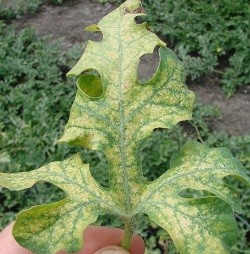 Koprivina grinja napada rajčicu, patlidžan, krastavac, dinje, lubenice, grah i grašak. Suzbija se najbolje akaricidom Vertimec jer ima translaminarna svojstva, a to znači da je dovoljno oprskati samo jednu stranu lista.