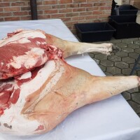 Glavni majstor i mesar Miroslav Radošević pokazao nam je da bi but, kako u Slavoniji nazivaju šunku, imao 25 kilograma, onda svinja mora težiti 250 kilograma, što je odnos jedan naprema deset, a meso ide u kulenove seke. Dodao je za to ona mora biti hranjena 13 do 14 mjeseci, pasmine landras, što se vidi po ušima koje nisu zašiljene, kao kod jorkšira, koji ima špicaste uši. No, čuli smo da je sve manje svinja u torovima u Slavoniji.