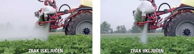 U isto vrijeme možete prskati brže i imati veći kapacitet prskanja zbog smanjenje doze aplikacije. Povećajte vrijeme raspoloživo za prskanje, smanjite "drift", smanjite upotrebu kemije, osigurajte točnu primjenu, veću brzina prskanja.