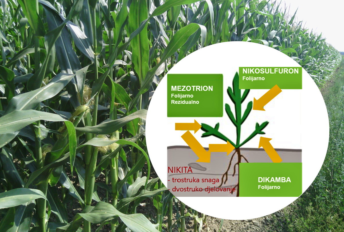 Zahvaljujući snažnom međudjelovanju triju spomenutih aktivnih tvari, kažu, Nikita suzbija praktički sve jednogodišnje i višegodišnje uskolisne i širokolisne korove koji zakorovljuju kukuruz.