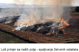 Vrijeme je žetve, ali se nadam, da će biti zanemarivo mali broj neodgovornih pojedinaca, koji očito ne znaju ili ne žele znati što učiniti sa ostatcima nakon žetve, stoga pribjegavaju njima najjednostavnijoj metodi spaljivanja slame i strništa.