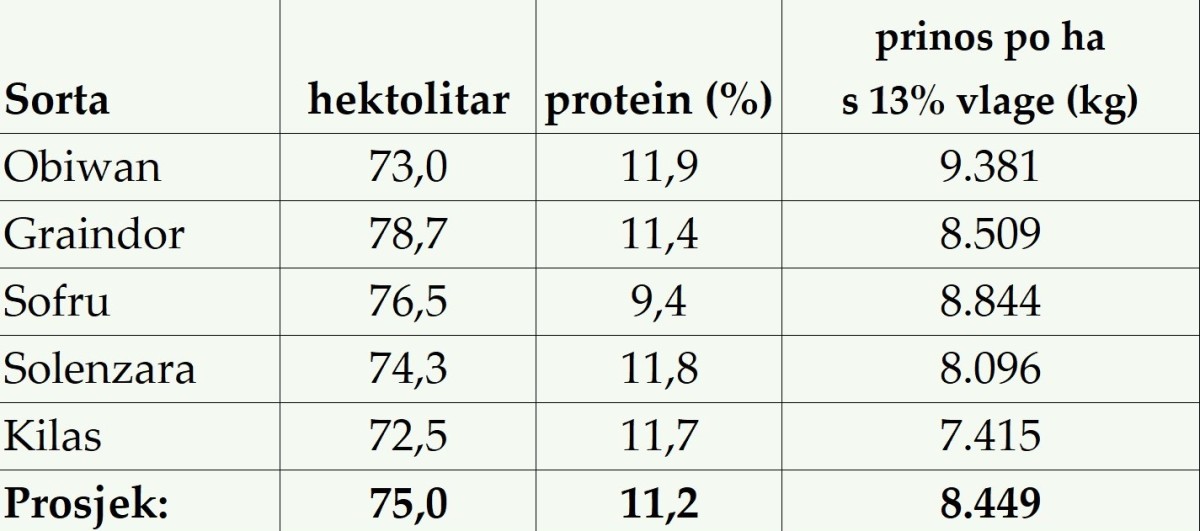 Najveći utjecaj na prinos ima broj klasova po metru kvadratnom.