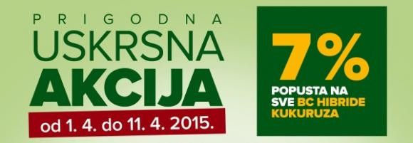 Slavili Uskrs ili ne, Bc Institut i ovaj mjesec poljoprivrednicima daje razloga za slavlje. Naime, nakon sajamskih popusta, zajedno sa svojim partnerima u prodaji, Bc Institut organizira Uskršnju akciju! Počevši sa današnjim danom pa sve do 11.04.2015. godine, prilikom kupovine Bc hibrida kukuruza, ostvaruje se popust od 7%. Akcija je važeća u poljoprivrednim apotekama diljem Hrvatske.