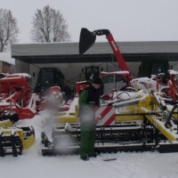 John Deere traktori i kombajni izgledaju snažno i močno i kad su prekriveni snijegom, te preliveni ledom kakvi su bili u petak na Danima otvorenih vrata osječkog Novocommerce International d.o.o., zastupnika ovog branda u Hrvatskoj. Ogroman broj traktora svih serija, te kombajni među kojima i nova W serija ponosno su se kočoperili pod zadnjim snijegom ove godine. KUHN, Fliegl, Bednar i Siptec su također marke mehanizacije koju u Hrvatskoj prodaje osječki Novocommerce. Thom Gady i njegova ekipa spremno su dočekali svoje kupce i pokazali sve što imaju u svom repertoaru, a mora se priznati da je posebno zanimljiva izložba velikog broja traktora svih kategorija.