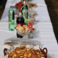 Jahači u povorci idu kroz selo, zaustavljaju se ispred kuća domaćina koji ih ponude rakijom, kuhanim vinom te slanim i slatkim tradicionalnim jelima.
