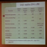 U 2014. godini ubrano je 8.840 tona maslina, skoro šest puta manje nego dvije godine prije kada je urod iznosio 49.520 tona. Podatci su to koje je iznijela na svom predavanju viša koordinatorica za hortikulturu pri Savjetodavnoj poljoprivrednoj službi Višnja Šimunović na Saboru maslinara i uljara održanom u sklopu 17. Noćnjaka Zadružnog saveza Dalmacije.