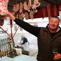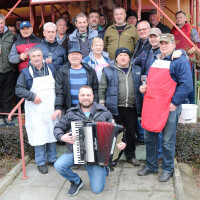 Kapljice vina nije ne nedostajalo koja je lakše niz grlo klizila uz harmonikaša i dobrog pjevača prof. Slavka Davidovića koji je svake godine na raspolaganju za tu vrstu posla. Budući da su se svi poslovi obavljali u sklopu ugostiteljskog objekta "Kod Prke“ gazda Stipo se pobrinuo kako bi gladni mesari imali dovoljno hrane za okrjepu.