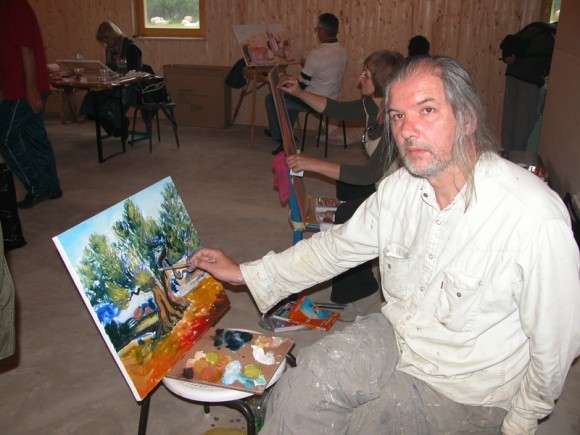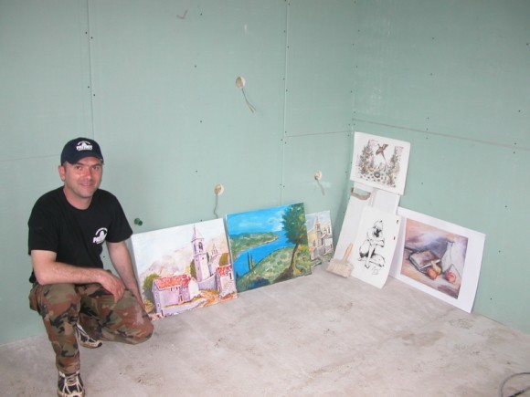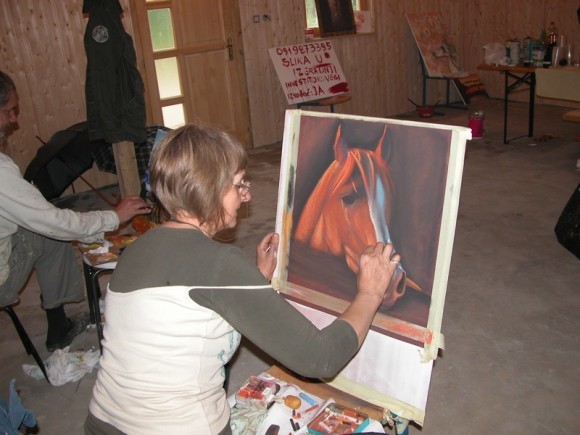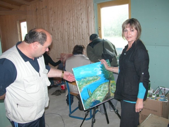 U radionici likovne kolonije na poligonu BZ za avanturistički turizam 'Patriot' smo ispred štafelaja zatekli i slikaricu Nadu Radoš iz Vukovara, suprugu hrvatskog branitelja pilota Antuna Radoša, koji je na zadatku poginuo u 'migu' tijekom Domovinskog rata (1992).