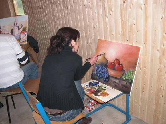 Nasmiješena Željka Sedlan kaže kako se prvi put uključila u radionicu likovne kolonije, ističući kako joj je dodatno drago baš zato što joj se to dogodilo u Dabru, čiji su dojmovi o svemu fantastični. "Vidite, slikam na motiv mrtve prirode akrilom na platnu. Ovo je tek neki kostur, a svoj rad ću vjerojatno završiti danas ili sutra. Svi radimo ono što volimo. Ovdje sam svime oduševljena i zadovoljna, nastavit ću slikanjem i u svakoj idućim likovnoj koloniji. Jedva čekam povratak ovom ambijentu", obećala je Željka. Sličnog su raspoloženja i sve slikarice poput Mire Kos, koje uz glazbu i prohladnu kišu, ali i uz koju pahuljicu snijega gore na vrhovima Dinare, pjevušeći, oblikuju prirodne motive, slažući boje, stvarajući najdraža i najljepša djela sretni što će biti i od koristi za obitelji poginulih hrvatskih branitelja u Domovinskom ratu.