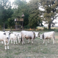 Ući na vrata ne možeš. Cigo ne da. To je jedan križanac psa hrvatskog ovčara s još nekim. Ali da tako kažemo, u tipu hrvatskog ovčara je. A ubrzo mu se pridružuje još jedna Garica. Također mala hrvatska ovčarka, a za njima ide Hrvoje. Pravi Šokac sa šeširom. Pušta nas unutra. I idemo kroz šumu, pa pored čardaka da bi se pred nama ukazao koral s kravama. Ali ne bilo kakvim. Slavonsko srijemski podolac je ljubav i strast Hrvoja i njegove obitelji. Ta stara pasmina krava drži se cijelu godinu na paši po sistemu krava-tele.