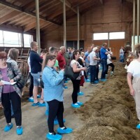 Vidjeli smo da je podloga u štali, koju su izgradili 2009. godine, od vapna, a na njoj sjeckana slama, koju dva puta dnevno stavljaju na ležište, što je iznenadilo naše stočare. Od stočne hrane, nismo primijetili miksericu, već koriste samo silaže i koncentrat te sve krave napasaju. Proizvodnja po kravi je 10.000 litara mlijeka, 800 kilograma masti, plus proteini što je jako dobro, komentirali su hrvatski stočari, koje ni kiša nije omela u obilasku veće farme u krugu od 100-tinjak metara.