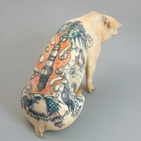 Dizajner Wim Delvoye poznati je konceptualni umjetnik koji je podržao Feehanovu ideju i 1997. godine u SAD-u počeo tetovirati svinje, nakon što su ga postroženi zakoni za životinjska prava natjerali da svoj čudni hobi premjesti u Kinu koja ima nešto blaže zakone protiv okrutnosti nad životinjama, gdje je uspostavio i umjetničku farmu. Tamo su se svinje uzgajale za tetoviranje, a nakon toga su žrtvovane zbog kože koja se prodavala po visokim cijenama ( i do 150 funti).