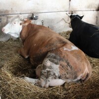 Jasna je simentalske pasmine i stara je oko 6 godina. Oplođena je umjetnim putem, a otac trojki je bik Even.