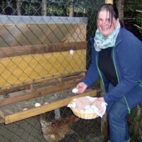 Nailazimo na gospođu Claudiju koja s košaricom odlazi do svojega kokošinjca. Kaže nam da se ne bavi poljoprivredom, već samo ima osam kokoši za potrebe svoje obitelji. Unatoč tome svih osam ih je uredno prijavljeno. I dok otvara ladicu koja se nalazi u sklopu dijela kokošinjca u kojem kokoši nose jaja, pozornost nam privlači nekoliko njih sa zelenkastom ljuskom. Pitamo je, je li to slučajnost, no Claudija nam pokazuje na nekoliko crnih kokoši za koje, kaže, nezna koje su pasmine, no nabavila ih je isključivo zbog tih zelenih jaja, koja sadrže manju količinu kolesterola od običnih, pa su samim tim zdravija. Hrani ih mljevenim kukuruzom, odnosno šrotom, kako ga poljoprivrednici zovu kod nas, koji kupuje i za pakovanje od 30 kg izdvaja 13,50 eura.
