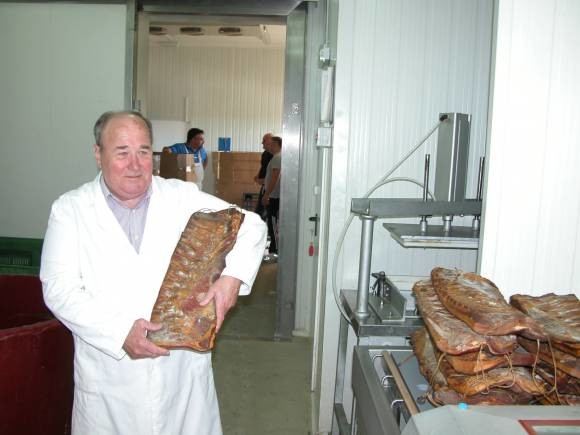 „Na žalost, u Hrvatskoj još ni s kim nismo uspjeli dogovoriti neki kvalitetniji kontinuitet opskrbe sirovinom koja nam je itekako potrebna - primjerice određene količine svježih svinjskih butova, pancete, pečenice. .Zato smo prisiljeni uzimati robu iz inozemstva. Nadamo se kako će u bliskoj budućnosti i u Hrvatskoj biti dovoljno sirovine pa ju nećemo morati kupovati izvan naše domovine. Inače, zasad u Mađarskoj na mjestu obrade odabiremo svježe svinjske butove, plećke, pancetu, pečenicu, a lakše nam je što ni carine nemamo nakon što je Hrvatska postala članica Europske unije. Više nemamo ni smrznute robe, jer nam ista brzo stiže u pršutanu. Primjerice, ako se svinje danas u poslijepodnevnim satima obrađuju u Mađarskoj, već su sutra u Hrvatskoj, odnosno u našoj pršutani.“