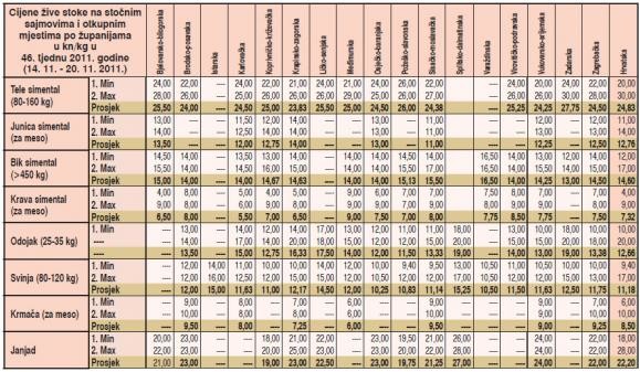 Uobičajeni porast cijena krmača za meso tijekom studenoga bilježimo i u ovoj godini. Cijene krmača na stočnim sajmovima u tjednu do 20. 11. 2011. godine porasle su za 20 posto u odnosu na cijene od prije dva tjedna. Na tržištu je primjetan nedostatak, a potražnja još nije na vrhuncu. Cijene su najčešće bile od 7 do 10 kn/kg, ovisno o potražnji.